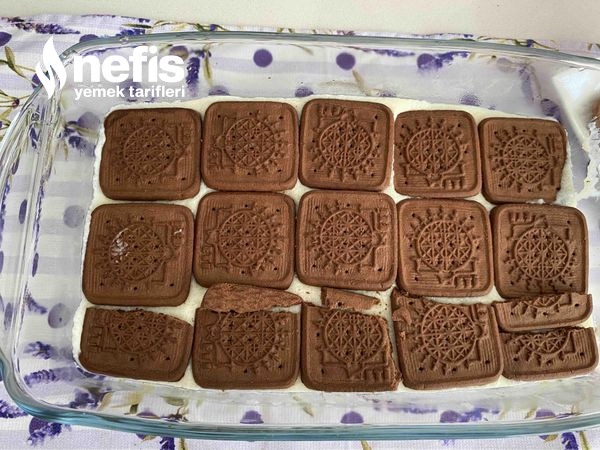 - Üzerine kakaolu bisküvilerden 1 sıra dizelim.