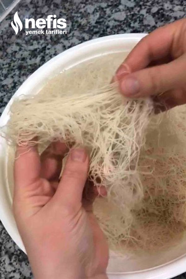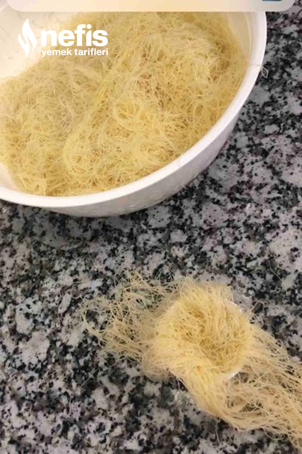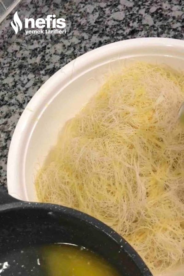 - 500 gram hazır kadayıfı tel tel olması için açalım.