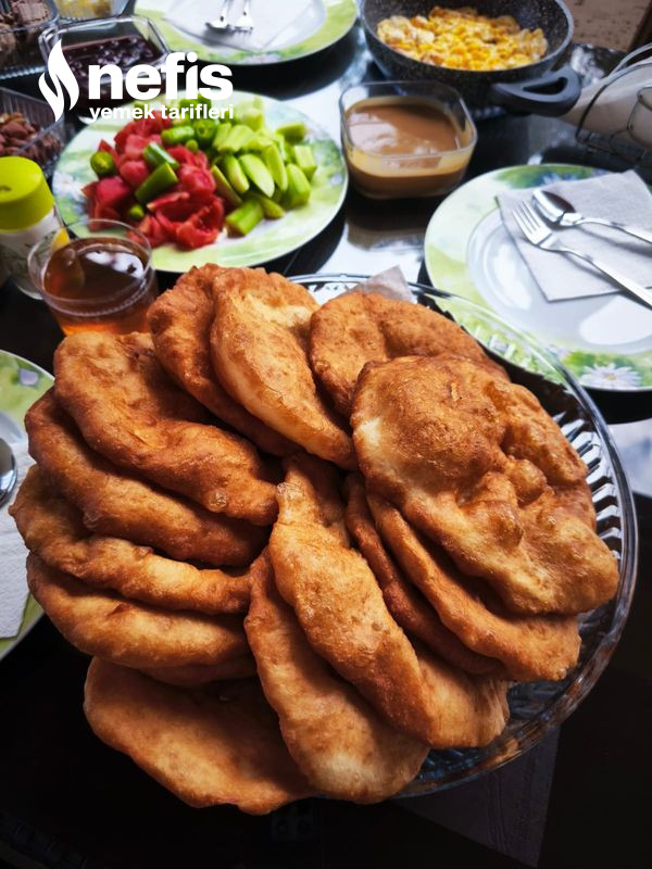 - Hamur dinlendikten sonra havasını alın 15 bezeye bölün, bir büyük servis tabağını yağlayın üzerinde her bir bezeyi elinizle bastırarak genişletip, parmağınızla ortasını delip kızgın yağda kızartın.
