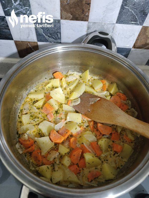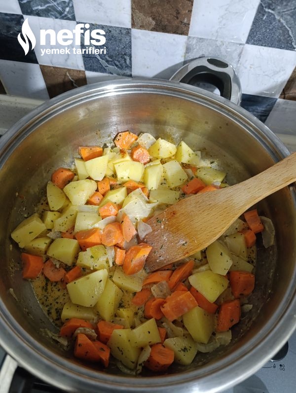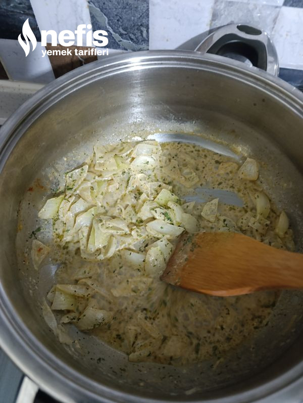 2. 5/10 dk soğanları kavurduktan az sıcak su koyup, karıştıralım.