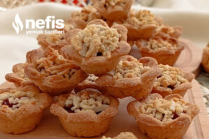 - Diğer hamuru iki yağlı kağıt ortasında büyütün, kurabiye kalıpları ile form verin ,ben çiçekli kalıp kullandım, küçük tartolet kalıbına yerleştirin .