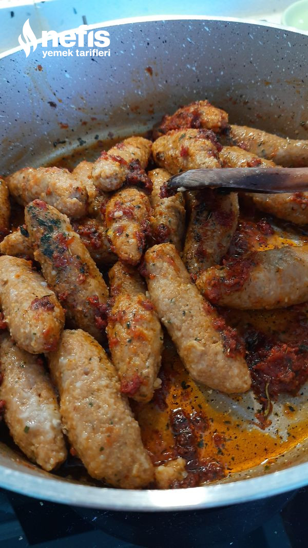 9. Pişen köftelerimizi sosumuzun içine koyup güzelce kavuralım, yavaş yavaş hareketlerle karıştıralım.