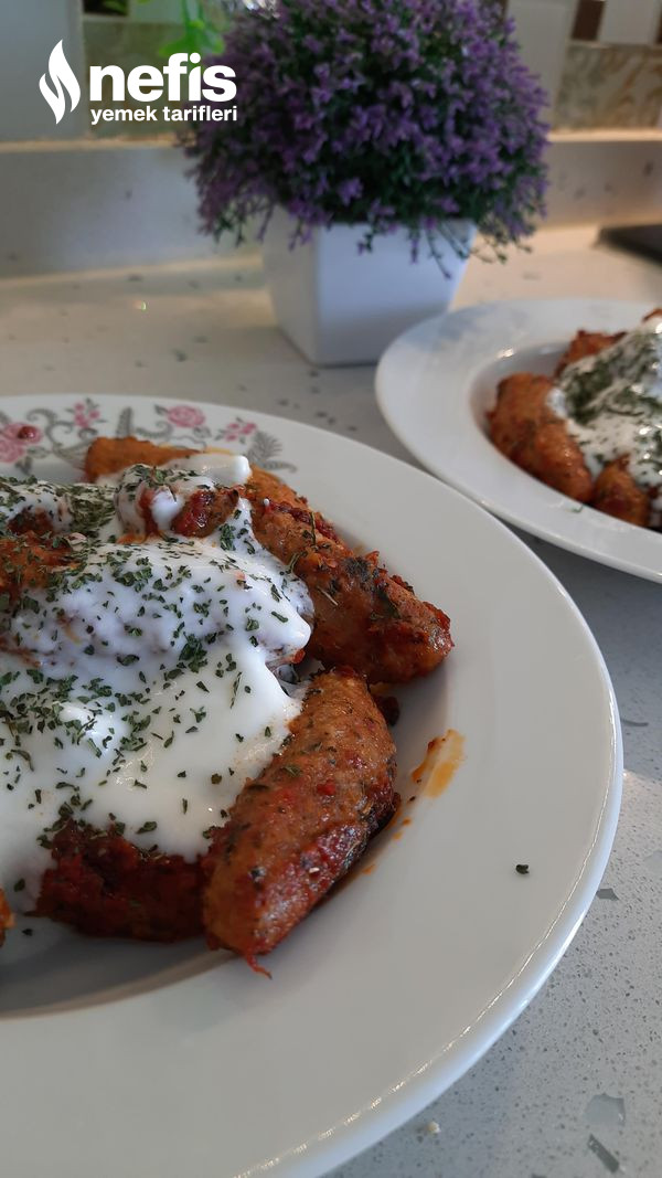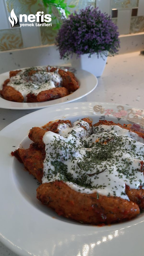 10. Servis tabağına alıp yoğurdumuzu ezmiş olduğumuz sarımsağı tuzu karıştırıp yemeğimizin üzerine gezdirip kuru nane ile sucak sıcak servis edelim.