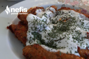 10. Servis tabağına alıp yoğurdumuzu ezmiş olduğumuz sarımsağı tuzu karıştırıp yemeğimizin üzerine gezdirip kuru nane ile sucak sıcak servis edelim.