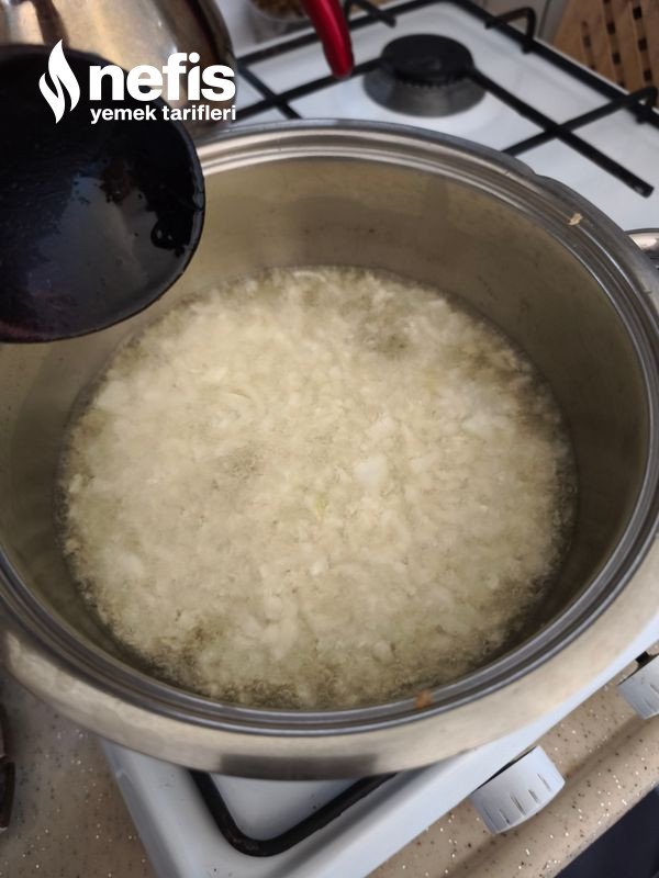 - Bir tavaya bir çay bardağı sıvı yağını ve ince ince ufadığımız kuru soğanları koyalım.