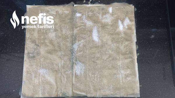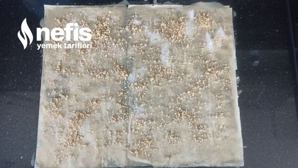 3. Üzerine ikinci baklava yufkasi serilir ve tıpkı süreç bu yufkayada yapılır.