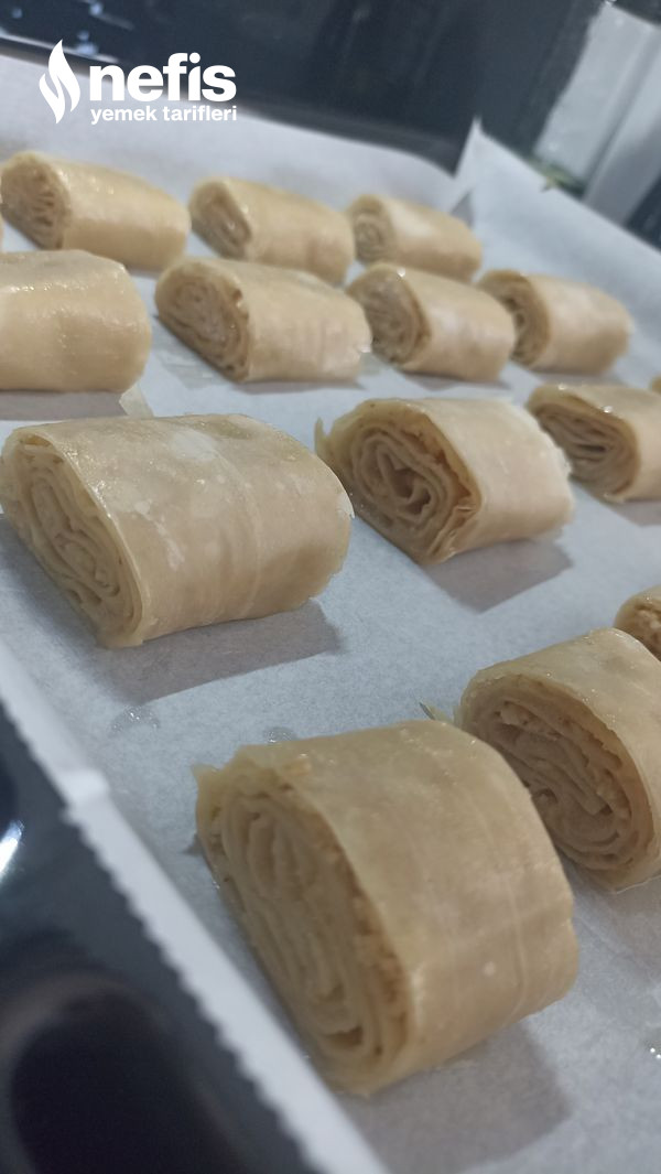 6. Yufkalar rulo biçiminde dikkatlice sarılır.