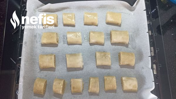 8. Yağlı kağıt serilmiş fırın tepsisine yerleştirilir.