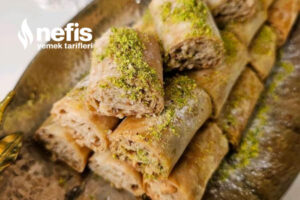 - Üzerine ceviz ve fıstık serpin,baştan sona iki parmak boşluk olacak formda katlayıp rulo yapın.