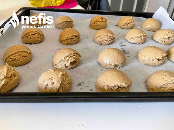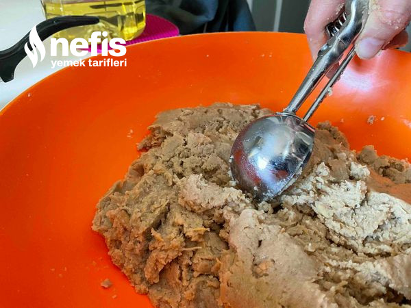 - Hamurdan isterseniz dondurma kaşığıyla isterseniz elinizle ceviz büyüklüğünde modüller alarak hal verin fırın tepsisine serdiğiniz yağlı kâğıt üzerine dizin.