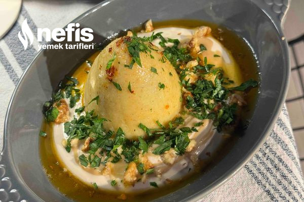 12. Üzerine içli köfteyi yerleştirip, tereyağında kızdırdığınız pul biberden gezdirin.