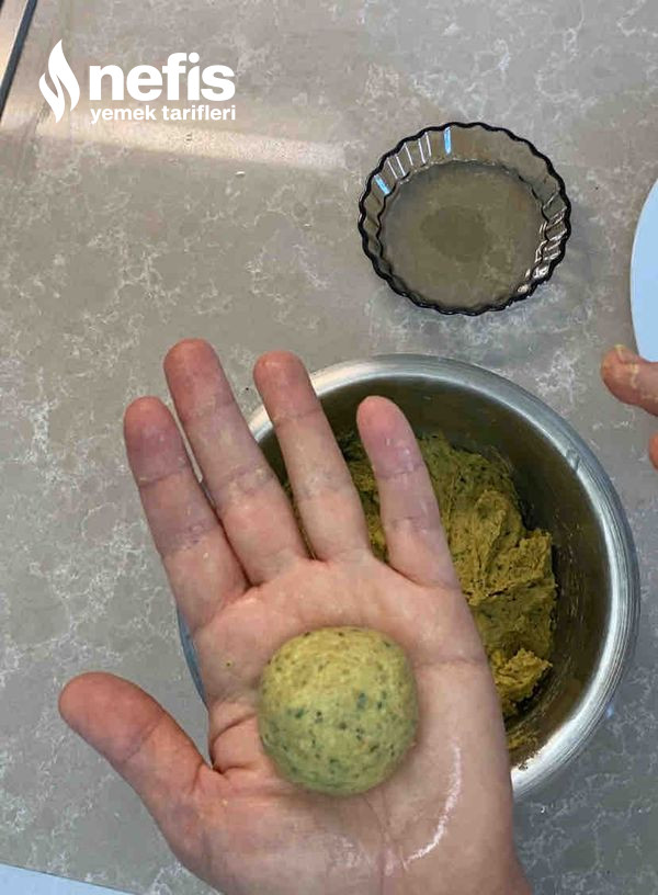 4. Elimizi biraz su ile ıslatarak ceviz büyüklüğünde modüller alarak köfte halini verelim ve mümkünse biraz buzdolabında yarım saat kadar bekletelim.