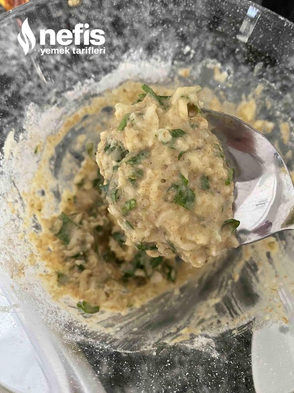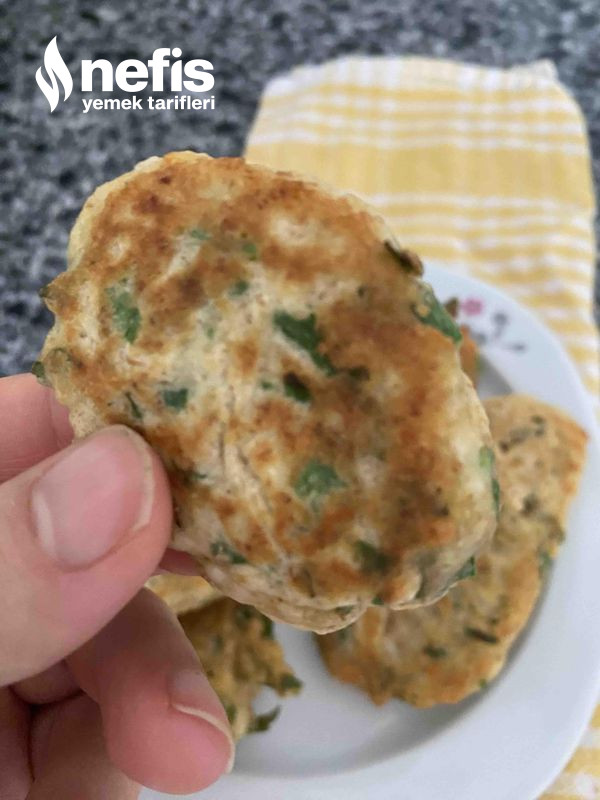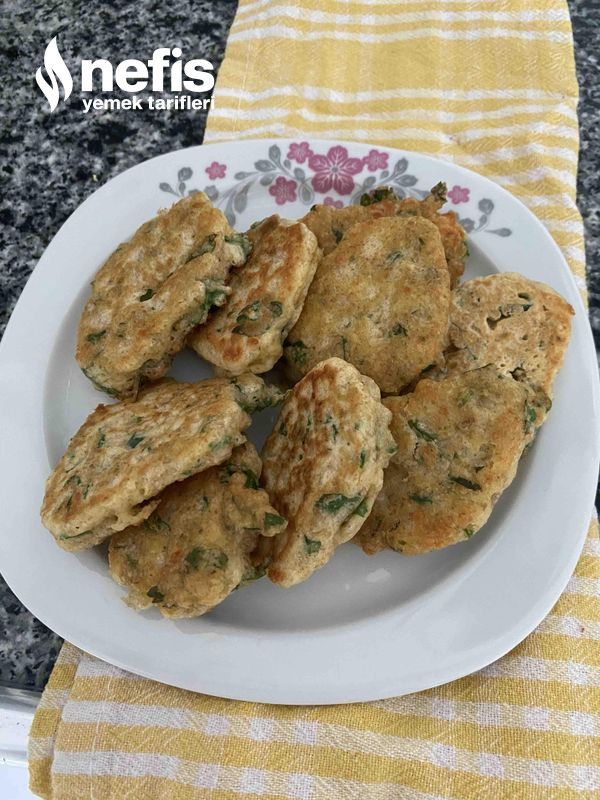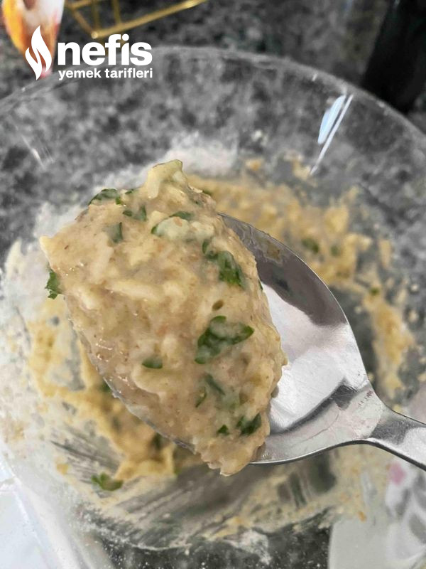 1. Yumurtaları çırpıyoruz ,geri kalan materyalleri koyup karıştırıyoruz ve kaşıkla alıp tavaya döküyoruz .