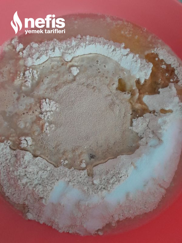 3. Yavaş yavaş su eği yaparak ,ele hafif yapışan yumuşak bir hamur yoğuralım,( hamuru ayarlamak için az ölçüde un yahut su eği yapabilirsiniz)üzerini kapatıp 1 saat mayalanmaya bırakalım.