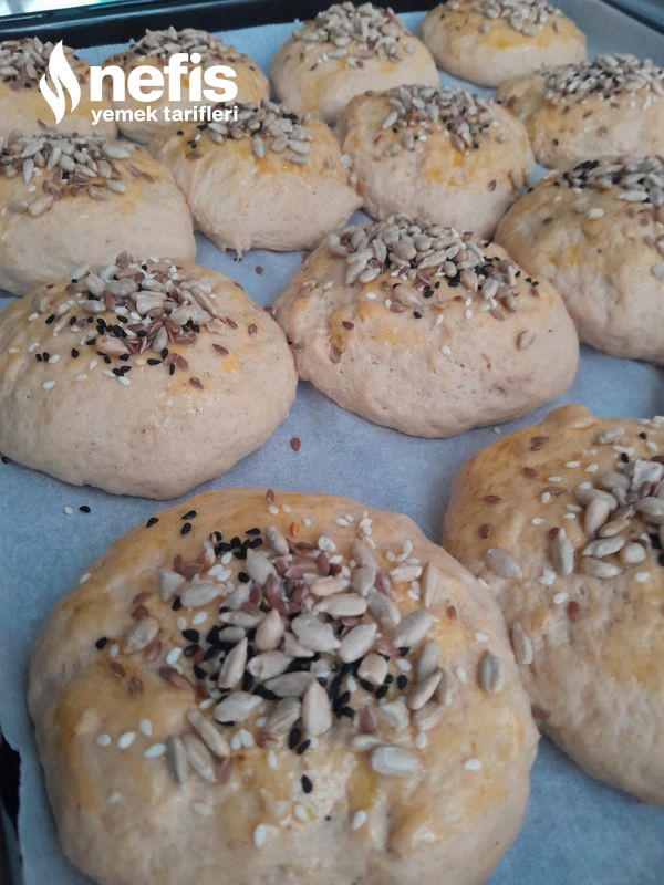5. Üzerini bir bezle kapatıp 10 dakika tepsi mayası yapalım yumurta sarısı sürüp çörek otu, susam ,keten tohumu, çekirdek içi serpelim ( dilediğinizi kullanabilirsiniz olmasada olur ).