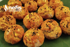 4. Dolaptan çıkardıktan sonra ceviz büyüklüğünde modüller alıp yuvarlayalım. Yağlı kağıt serili tepsimize dizelim. Üzerine yumurtasını sürüp çörek otu serpelim.