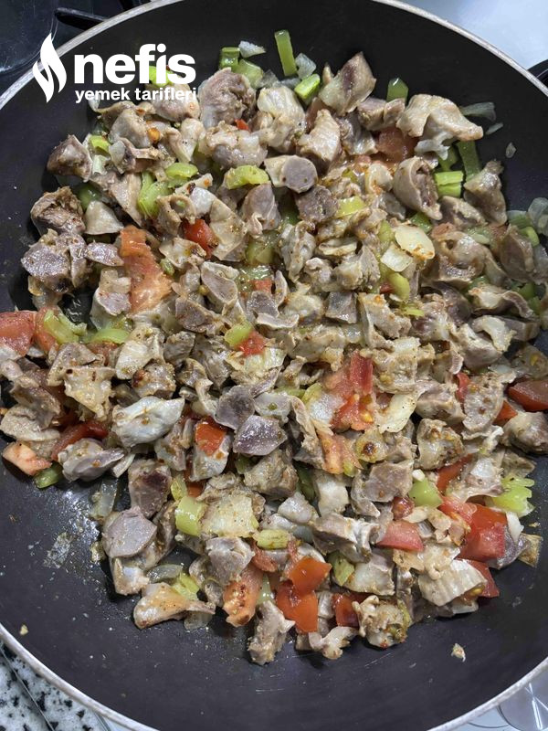 5. Pişen etlerimizi ince ince kıyıp sıvı yağ eklediğimiz tavamıza alalım.
