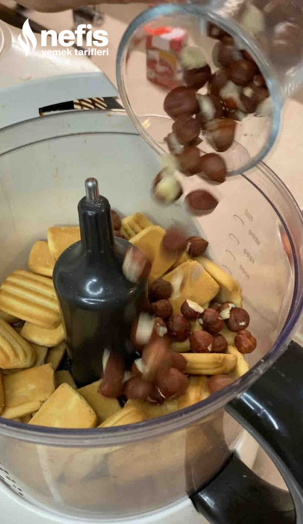 - Rondoya cici bebe bisküvileri ve fındık koyarak (ceviz de olur) toz haline getirelim. Meyvelerimizi de dilimleyip bekletelim.