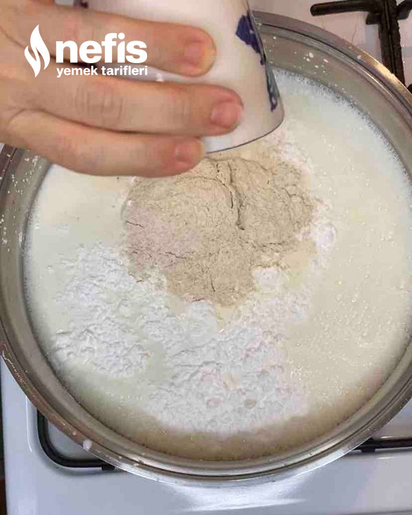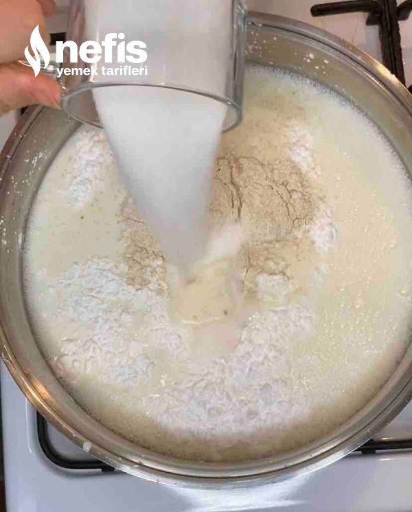 - Tenceremizin içine sütü, şekeri, unu, nişastayı ve yumurta sarısını koyarak orta ateşte muhallebi kıvamına gelinceye kadar pişirelim.