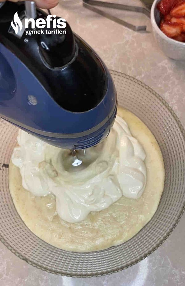 - Ilınmış olan muhallebinin içine sıvı kremayı koyarak mikserin süratli ayarında ipeksi bir hal alana kadar çırpalım.