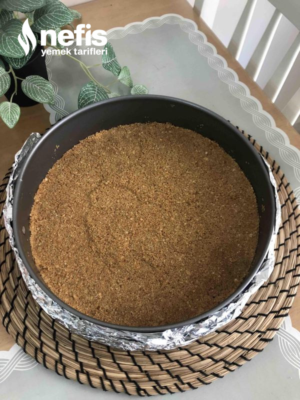 4. Dış kısmı 2 kat alüminyum folyo ile kaplanır. Bisküvi kalıba aktarılır.
