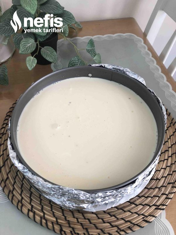6. ⭐️Peynirli karışım için bütün materyaller pürüzsüz bir kıvam alana kadar çırpılır ve kalıba aktarılır.