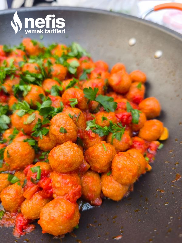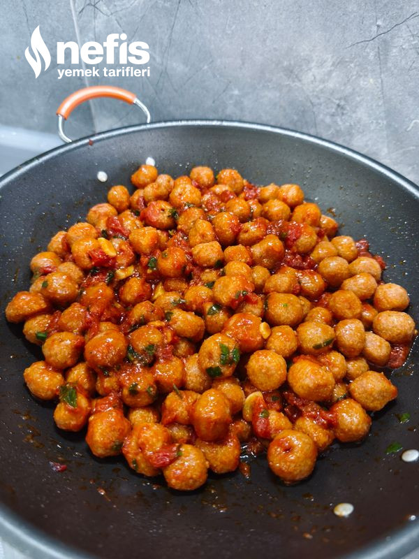 - Haşlanan köftelerle sosunu karıştırıyorum.
