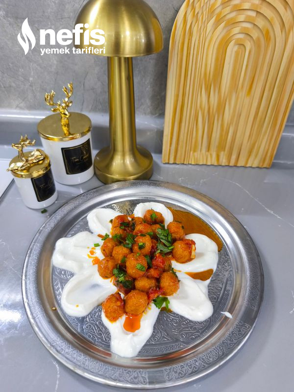 - Sarımsaklı süzme yoğurtla servis ediyorum.
