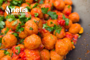 - Haşlanan köftelerle sosunu karıştırıyorum.