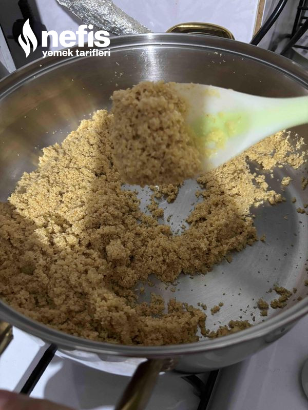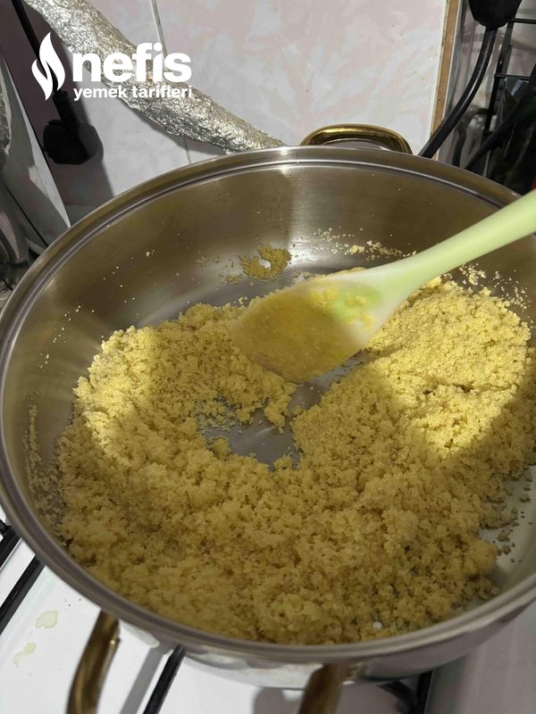 2. Tereyağı ve irmiği daima karıştırarak kavuralım.