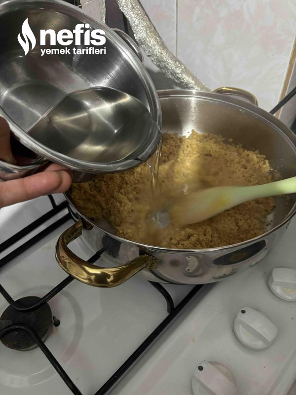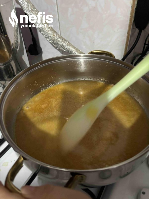 5. Rengi uygunca yoğunlaşınca şerbeti ekleyip, süratli hızlı karıştıralım.