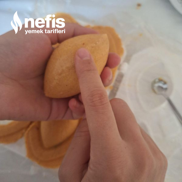11. Çukurlaşan hamurumuzun birinci 4 üne iç harcınızı yerleştirelim.