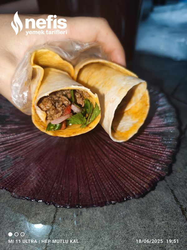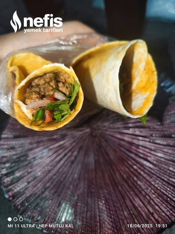 - Kıyma piştikten sonra artık hazır kupkuru olmasın dikkat et salata ile lavaşa sarın, afiyet olsun.
