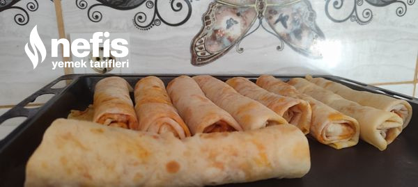 - Ardından iç harcının yağını bir lavaşın içine sürün her yere eşit bir halde dağıtın iç harcını bir şerit halinde koyun ve lavaşı yandan katlayıp sarın. Afiyet olsun.