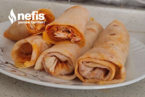 - Ardından iç harcının yağını bir lavaşın içine sürün her yere eşit bir halde dağıtın iç harcını bir şerit halinde koyun ve lavaşı yandan katlayıp sarın. Afiyet olsun.