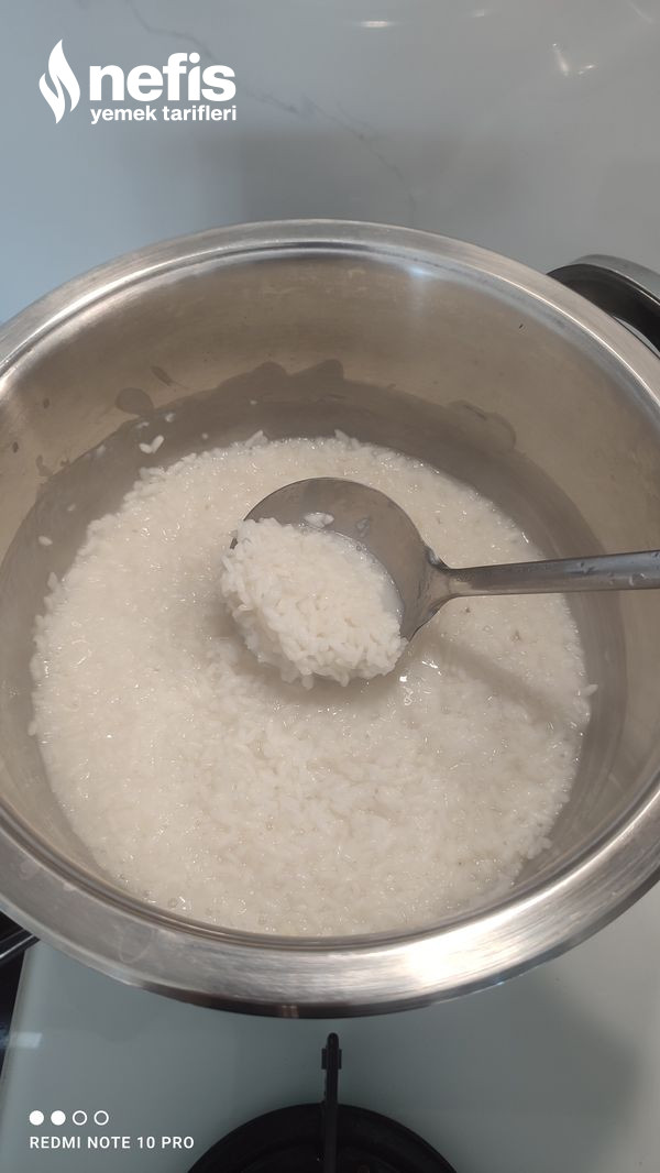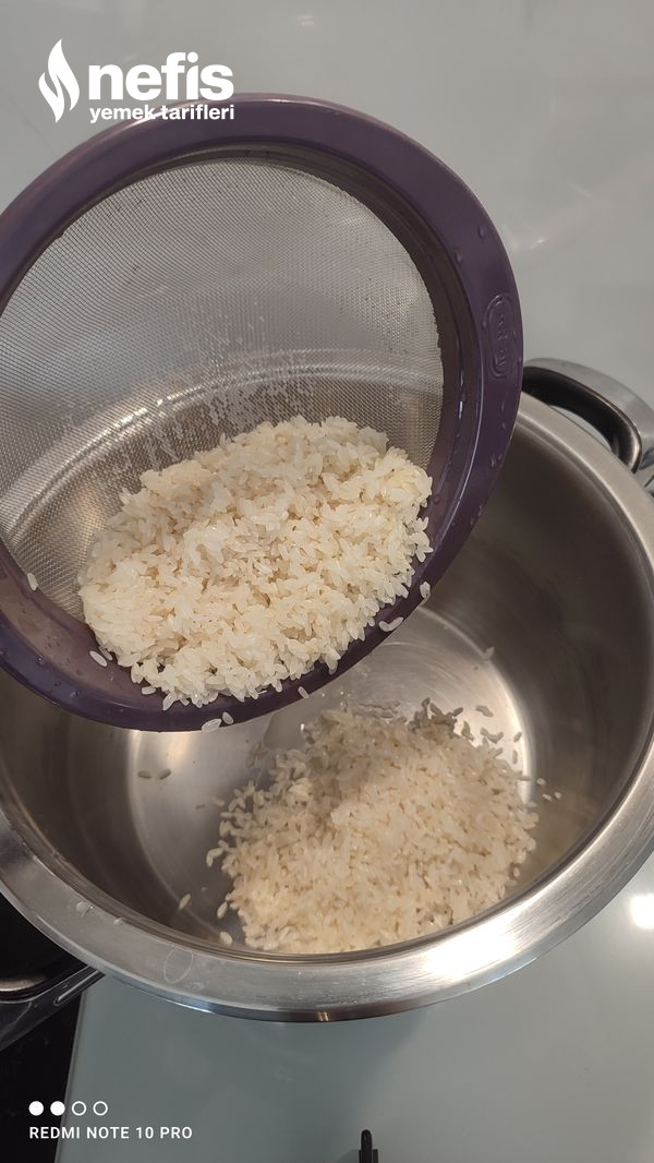 - Öncelikle tencereye yıkadığımız 2 su bardağı pirinçi alalım üzerine suyu ekleyip kaynamaya bırakalım.