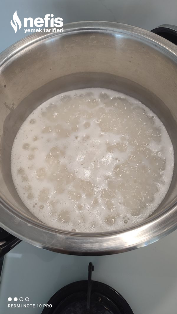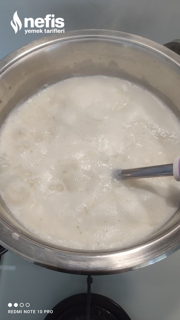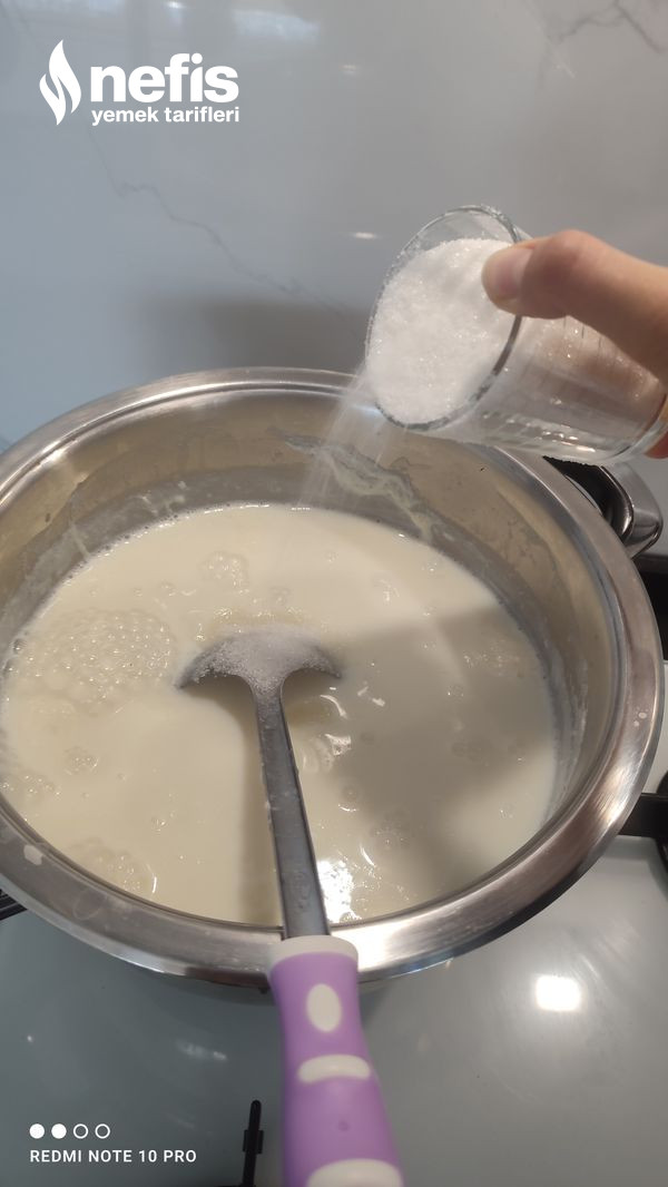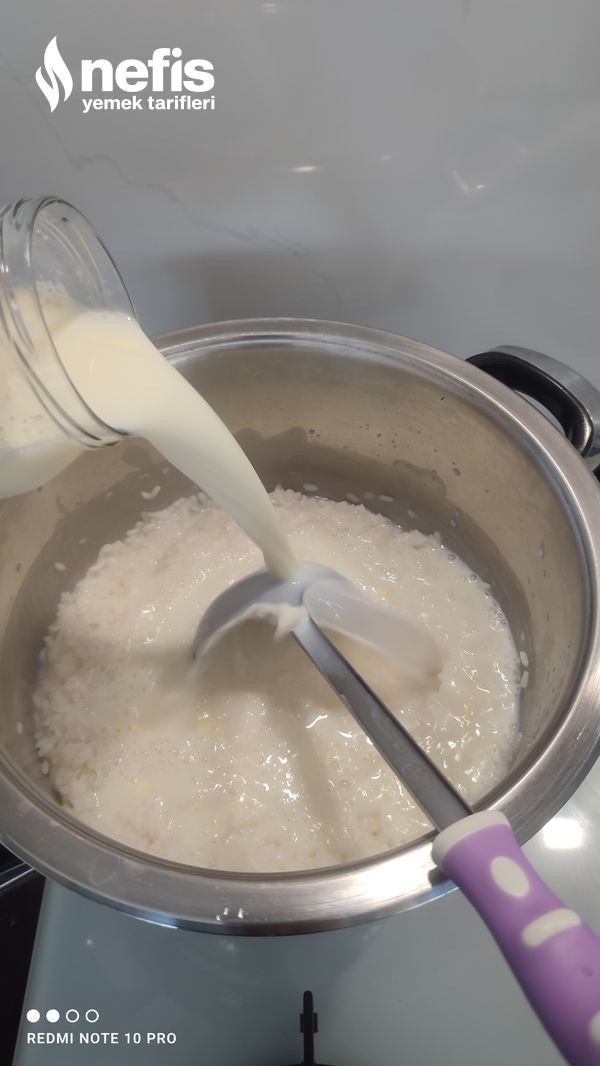 - Pirinçler pişip suyunu çektikten sonra sütü ek edelim ve tekrar kaynamaya bırakalım.