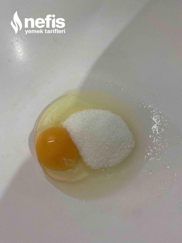 - Yumurta ve toz şekeri bir kapta çırpın.