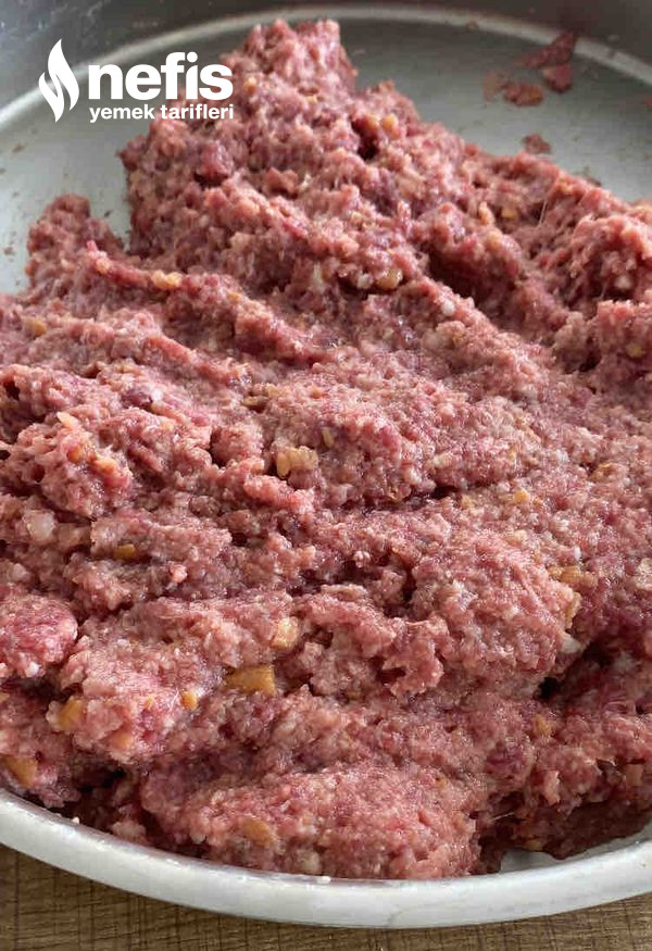 - İlk olarak kıyma ve ekmek içini güzelce yoğuruyoruz.