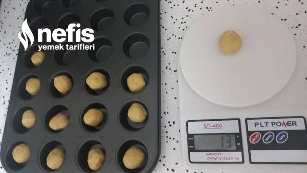 - Hamur olunca her biri 13 yahut 14 gram olacak halde yuvarlıyoruz.