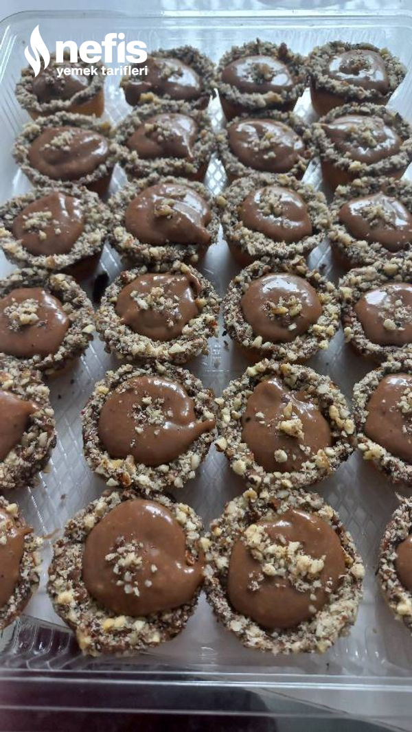 - Çıkan tartoletleri birinci çikolata sonra kıyılmış fındıklara batırıyoruz.