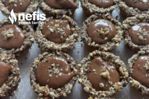 - Çıkan tartoletleri birinci çikolata sonra kıyılmış fındıklara batırıyoruz.