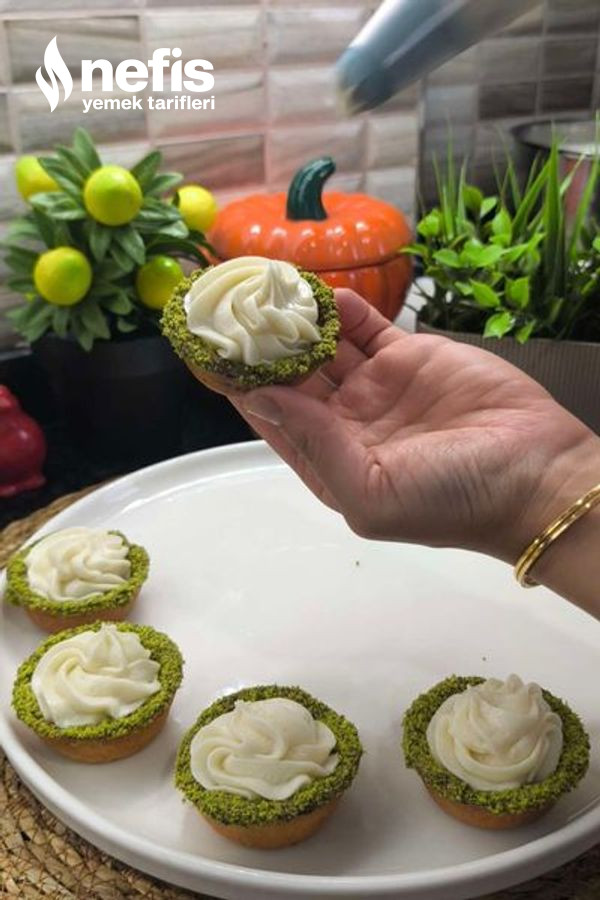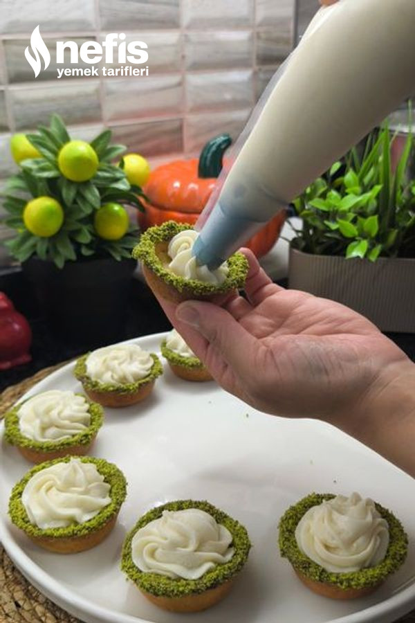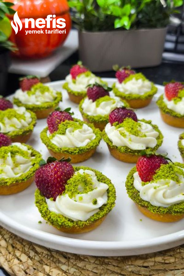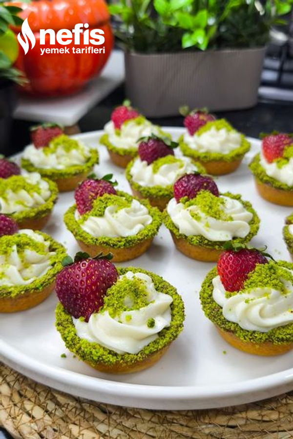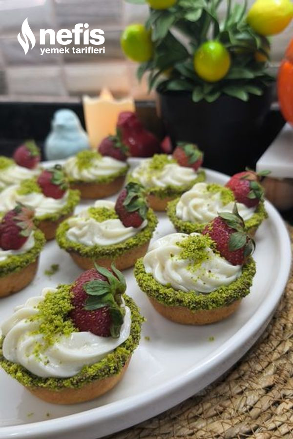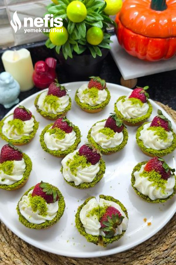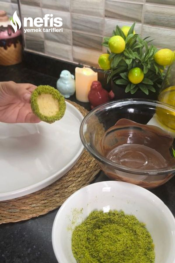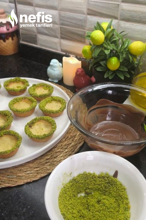 - Tartoletler pişip soğuduktan sonra benmari yordamı eritilmiş çikolataya kenarlarını batırıp sonra antep fıstığı tozuna bulayın.