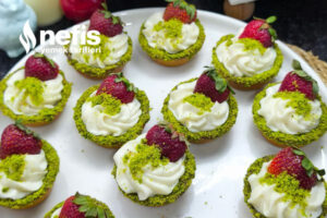 - Tartoletler pişip soğuduktan sonra benmari yordamı eritilmiş çikolataya kenarlarını batırıp sonra antep fıstığı tozuna bulayın.
