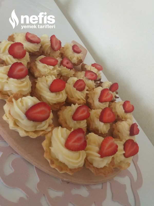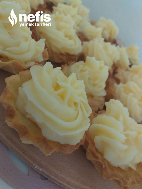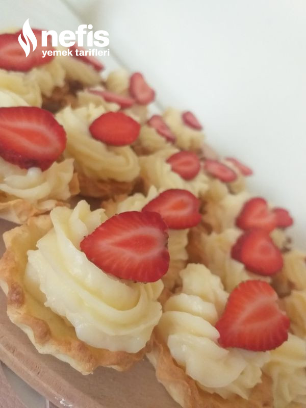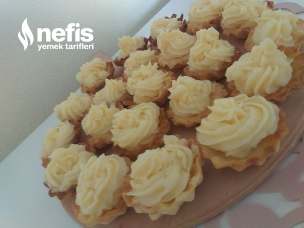 - İlk sıcaklığı çıkan tartoletlerin ortasına kremadan sıkalım.