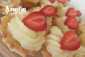 - İlk sıcaklığı çıkan tartoletlerin ortasına kremadan sıkalım.