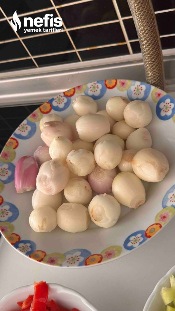 - Arpacık soğanları ekleyelim tekrar kavuralım.