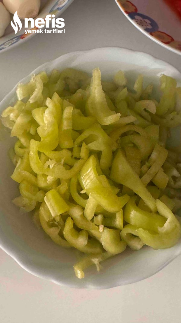 - Halka halka dilimlenmiş ya biber ve yeşil biberi ek edip tekrar kavuralım.