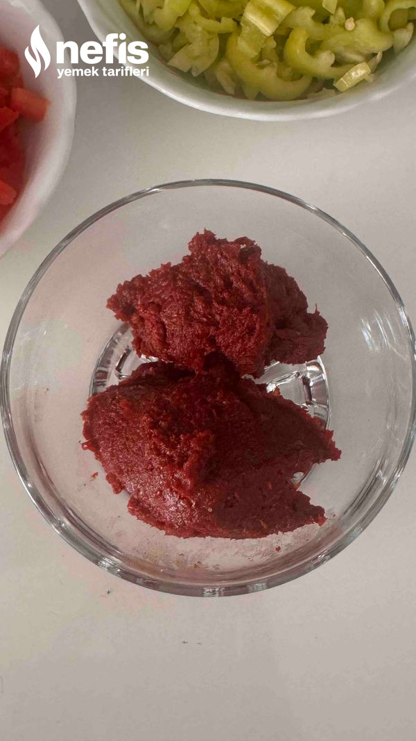 - 1 yemek kaşığı antep salçası ( isteye nazaran dometes v.s salça olur )