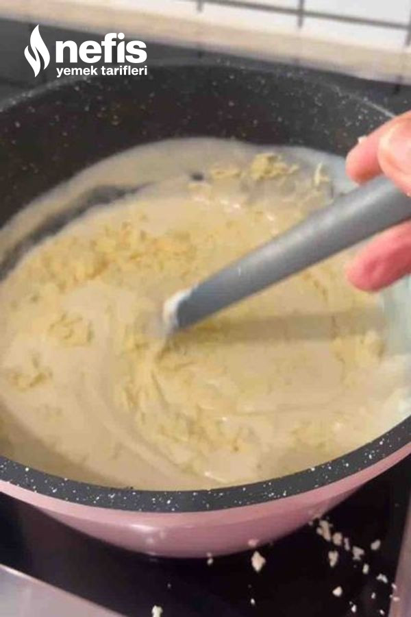 4. Ardından yavaşça tuz, süt,muskat ek edip, daima karıştırarak kıvam alana kadar pişirin.